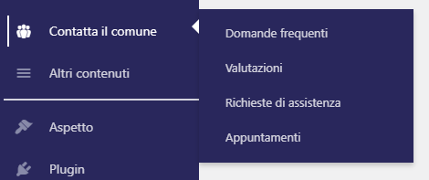 Nel menù di sinistra sposta il mouse sulla voce "Contatta il Comune" e seleziona la voce "Domande frequenti".