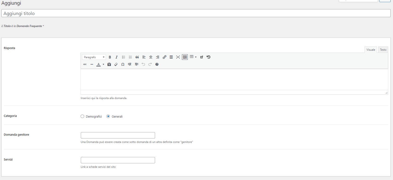Per migliorare la gestione dei contenuti, è possibile anche raggruppare le FAQs in categorie.