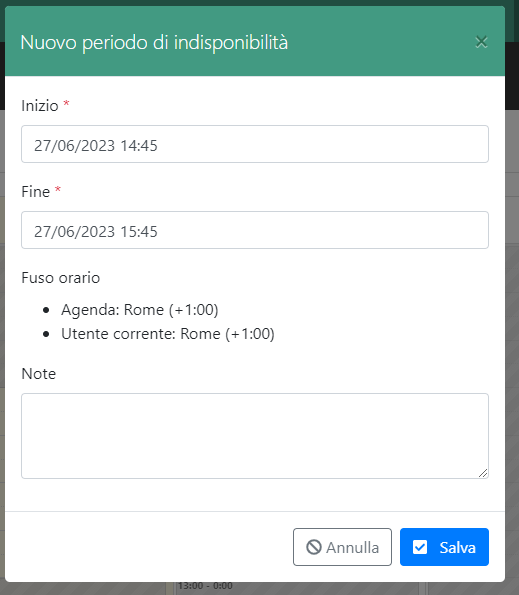 - inserire delle indisponibilità / bloccare delle fasce orarie