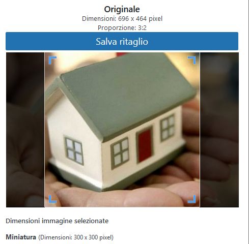 Puoi accedere alla funzione di ritaglio immagine direttamente dalla gestione dei media o al momento del caricamento dell'immagine.
